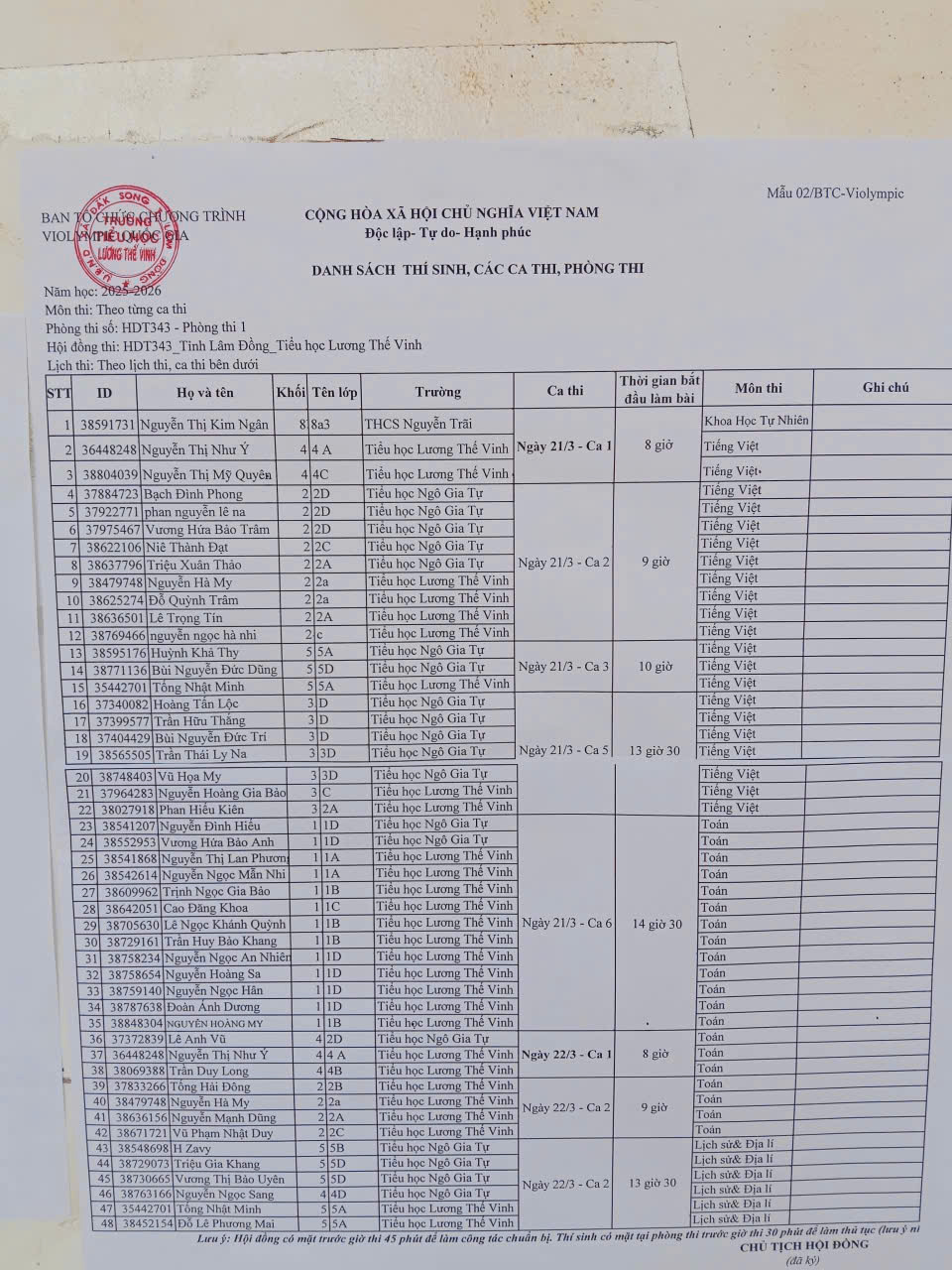 Chào mừng các thí sinh về dự thi violympic cấp quốc qia năm học 2025-2026, thời gian 21/3/2026 đến 22/3/2026.